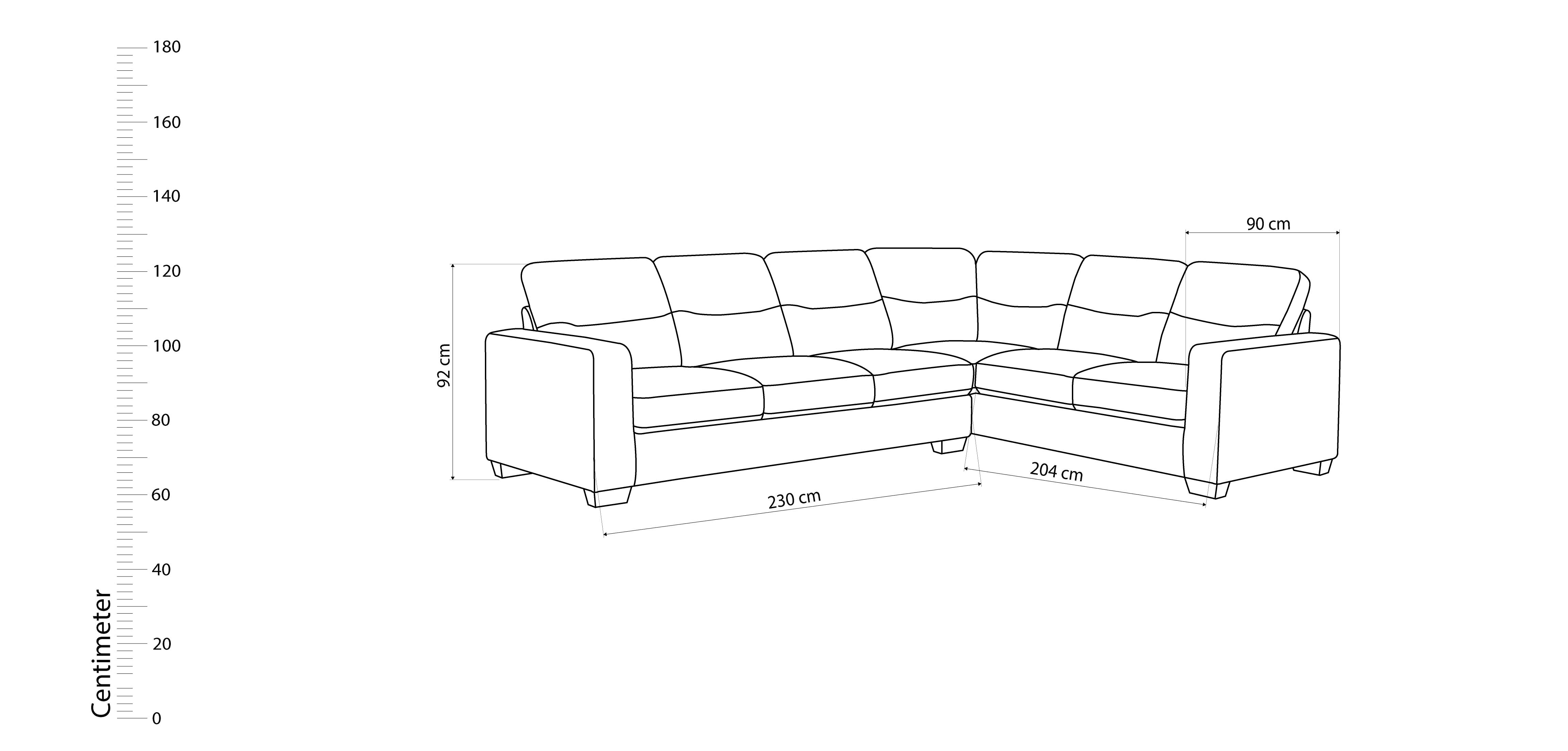 الأبعاد : أريكة LAF 204*90*92 سم، أريكة RAH 230*90*92 سم