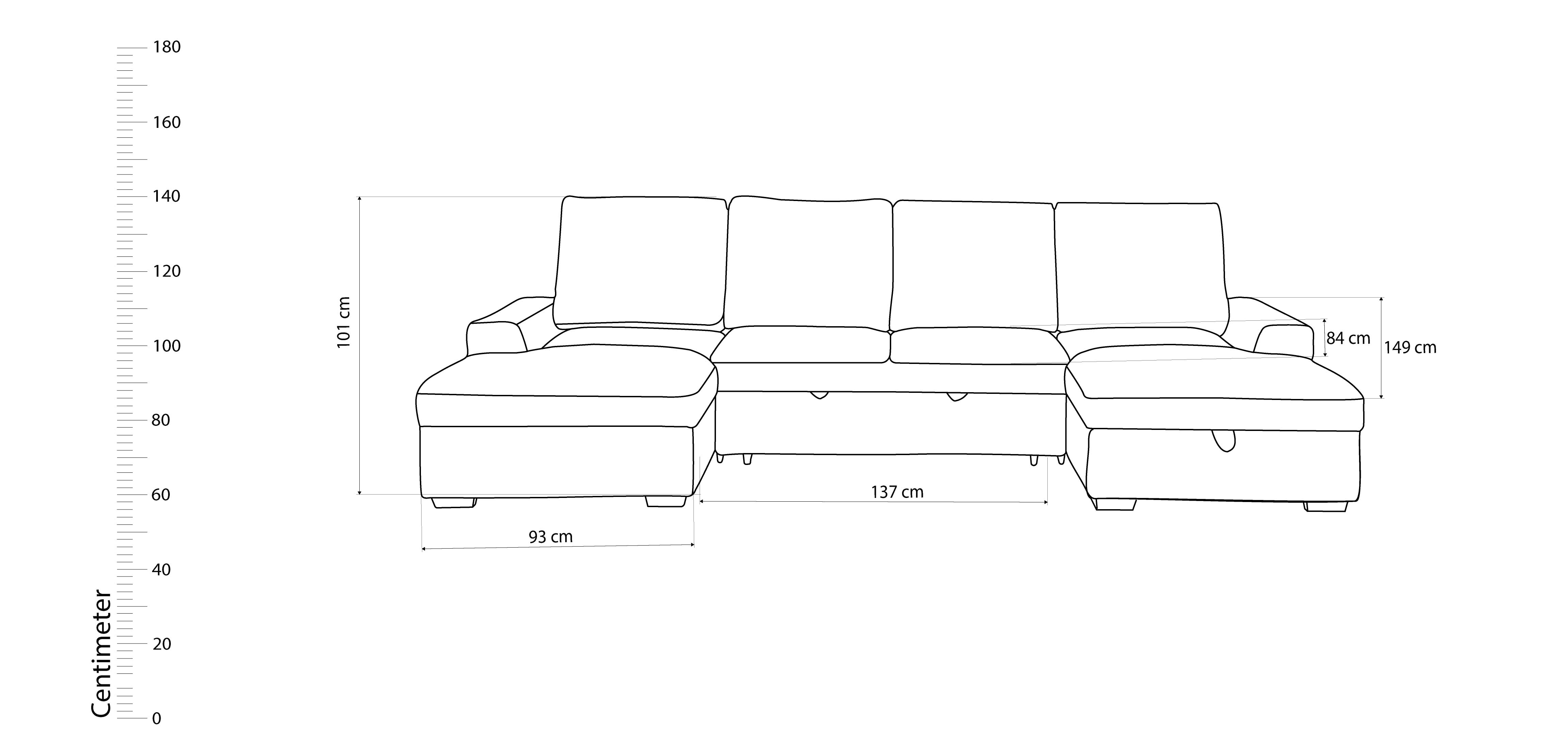 Dimensions: LAF Chaise 93*149*101 CM, RAF Chaise 93*149*101 CM, Armless Sofa 137*84*101 CM