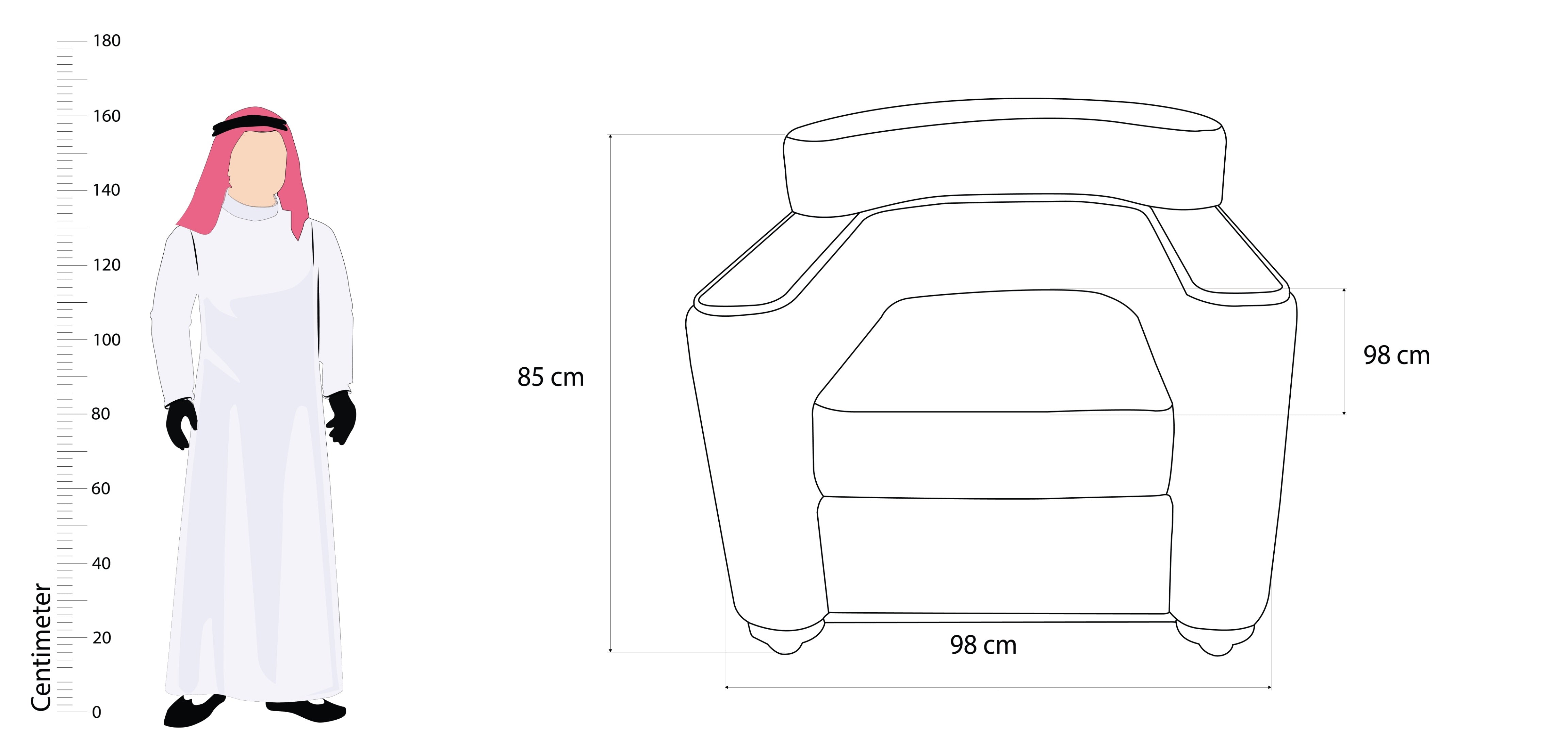 الأبعاد : 98 × 98 × 85 سم